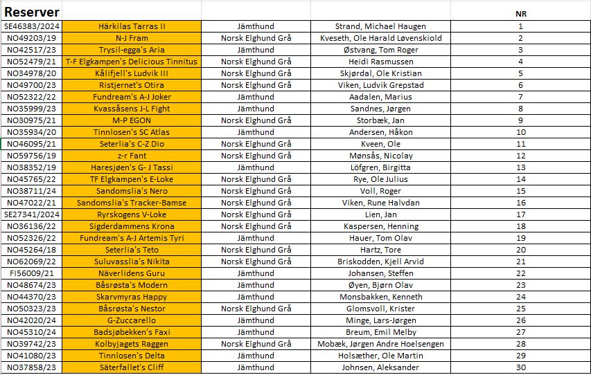 Trekningsliste og reserver: