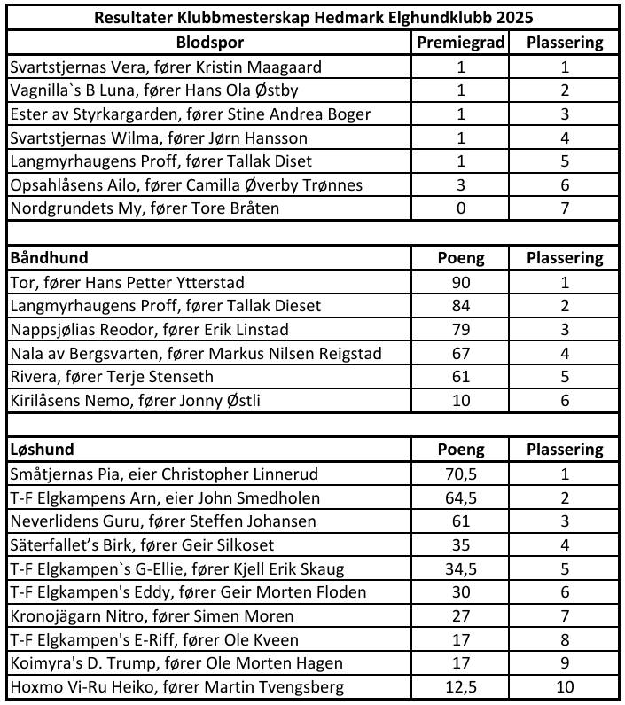 6. September 2025 arrangerte vi felles klubbmesterskap for både spor-, band- og løshund i Trysil dype skoger. Det ga mersmak for oss å arrangere noe sammen på tvers av komiteer.